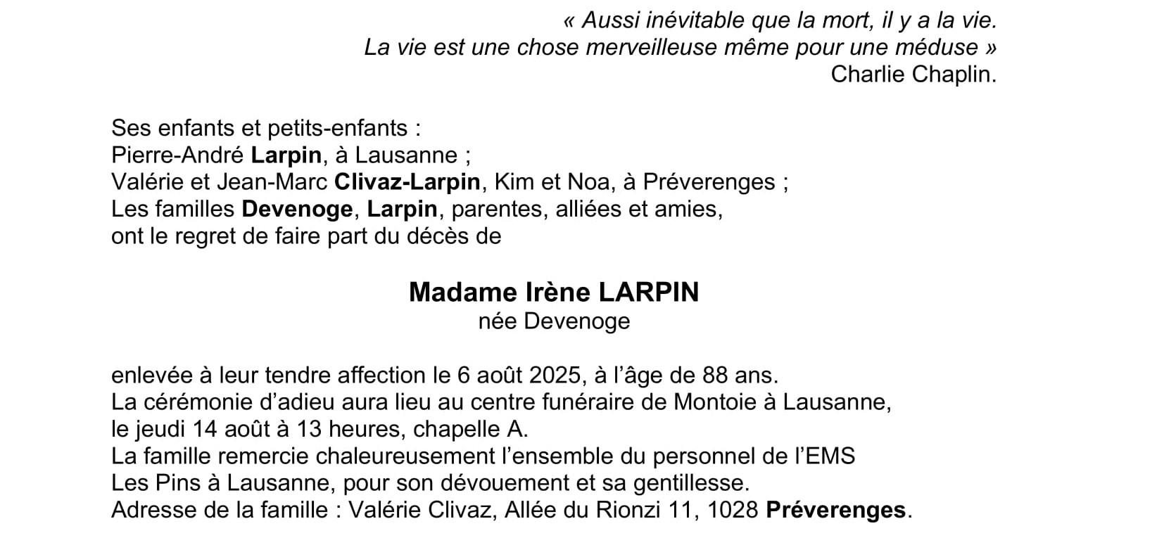 Madame Irène LARPIN