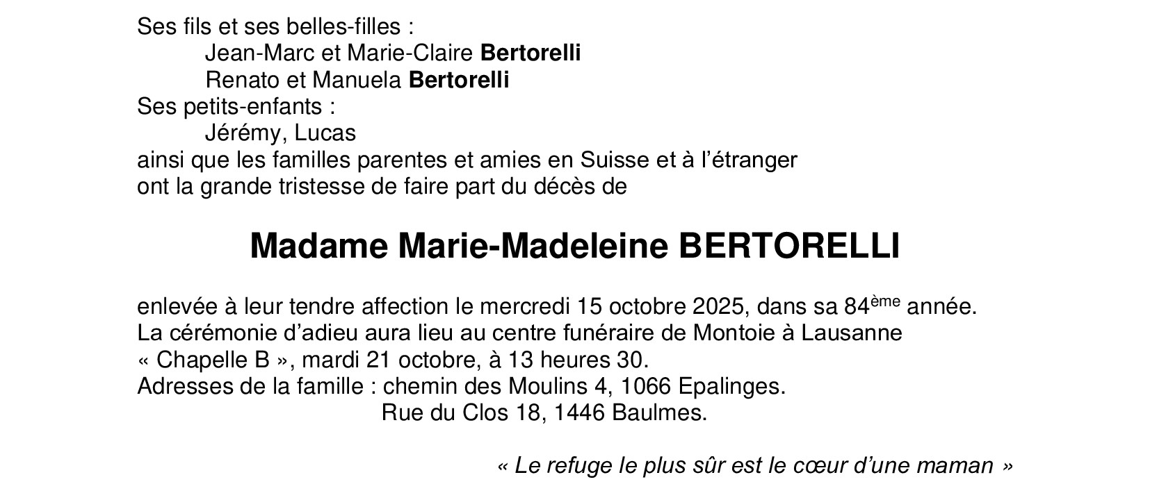 Madame Marie-Madeleine BERTORELLI