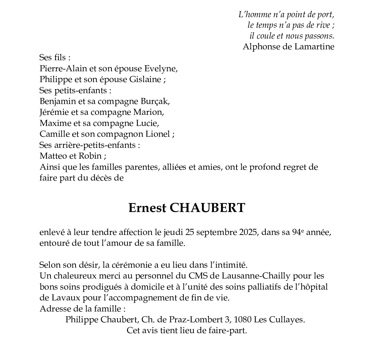 Monsieur Ernest CHAUBERT