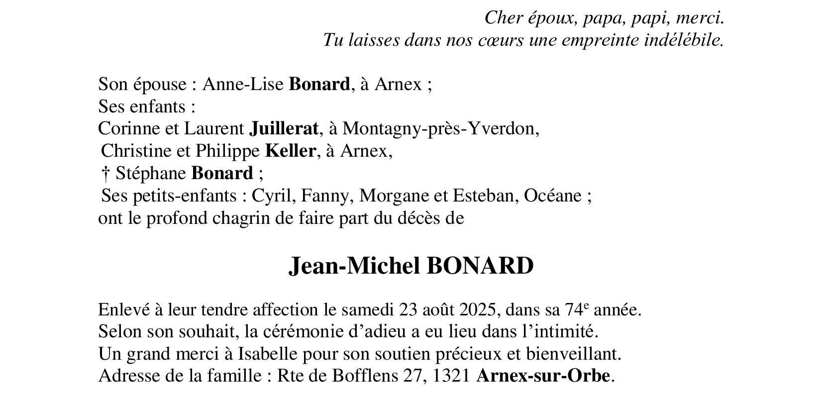 Avis mortuaires / Remerciements