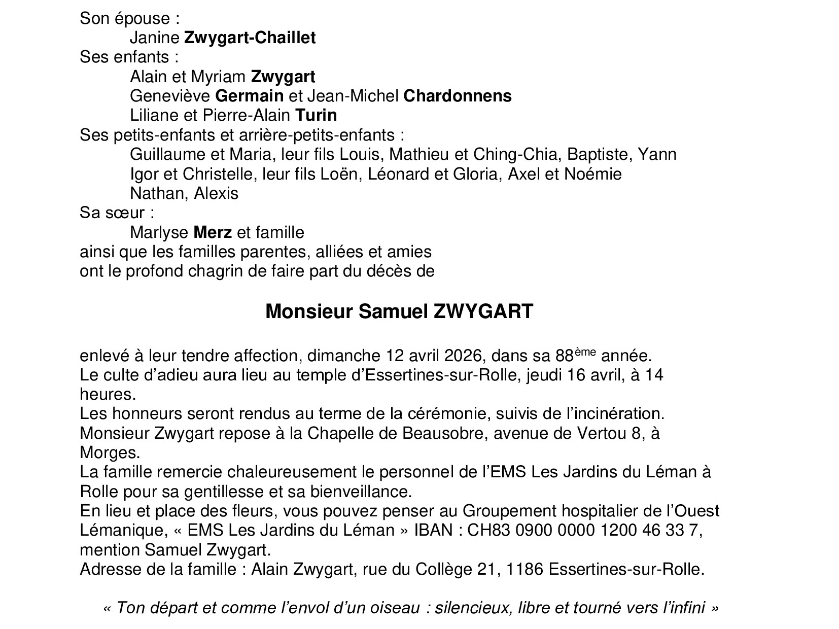 Monsieur Samuel ZWYGART