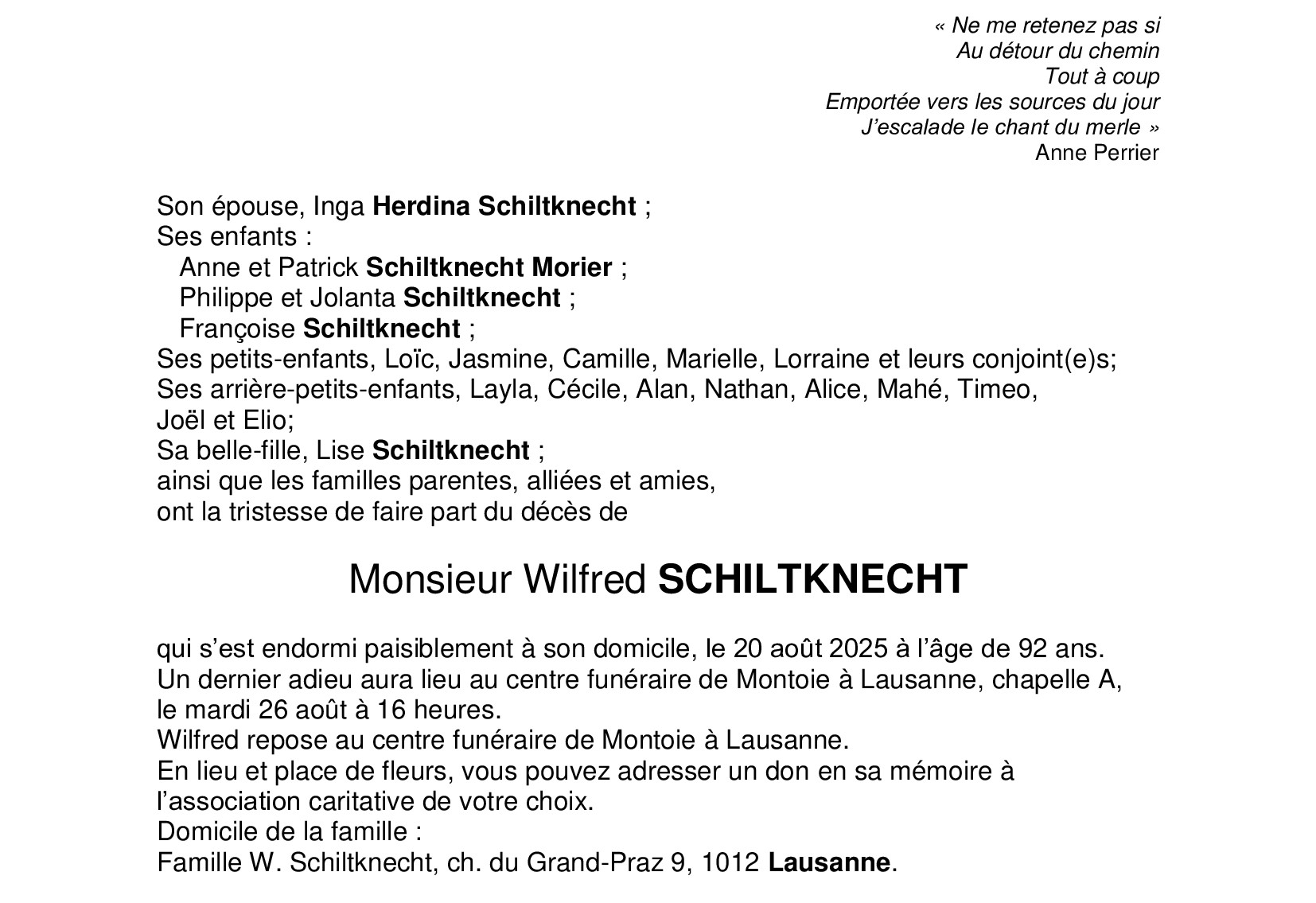 Monsieur Wilfred SCHILTKNECHT