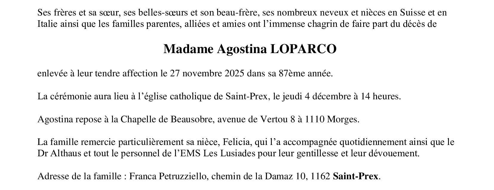 Madame Agostina LOPARCO