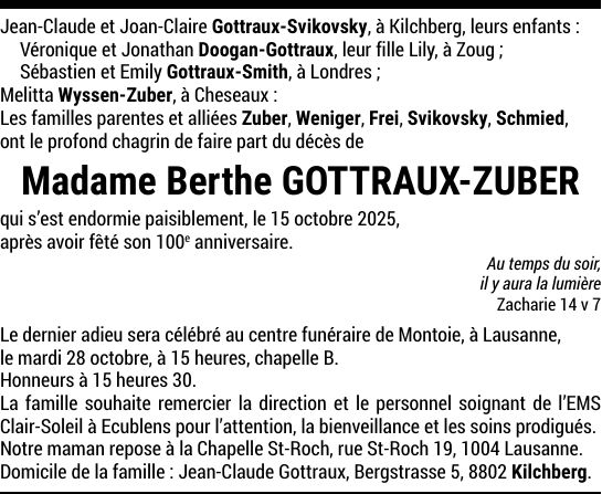 Madame Berthe GOTTRAUX-ZUBER