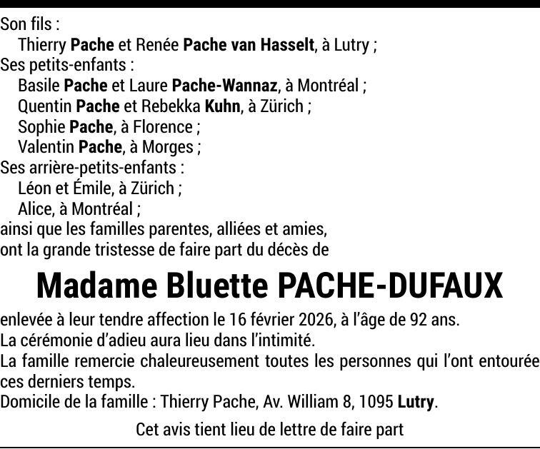 Madame Bluette PACHE-DUFAUX