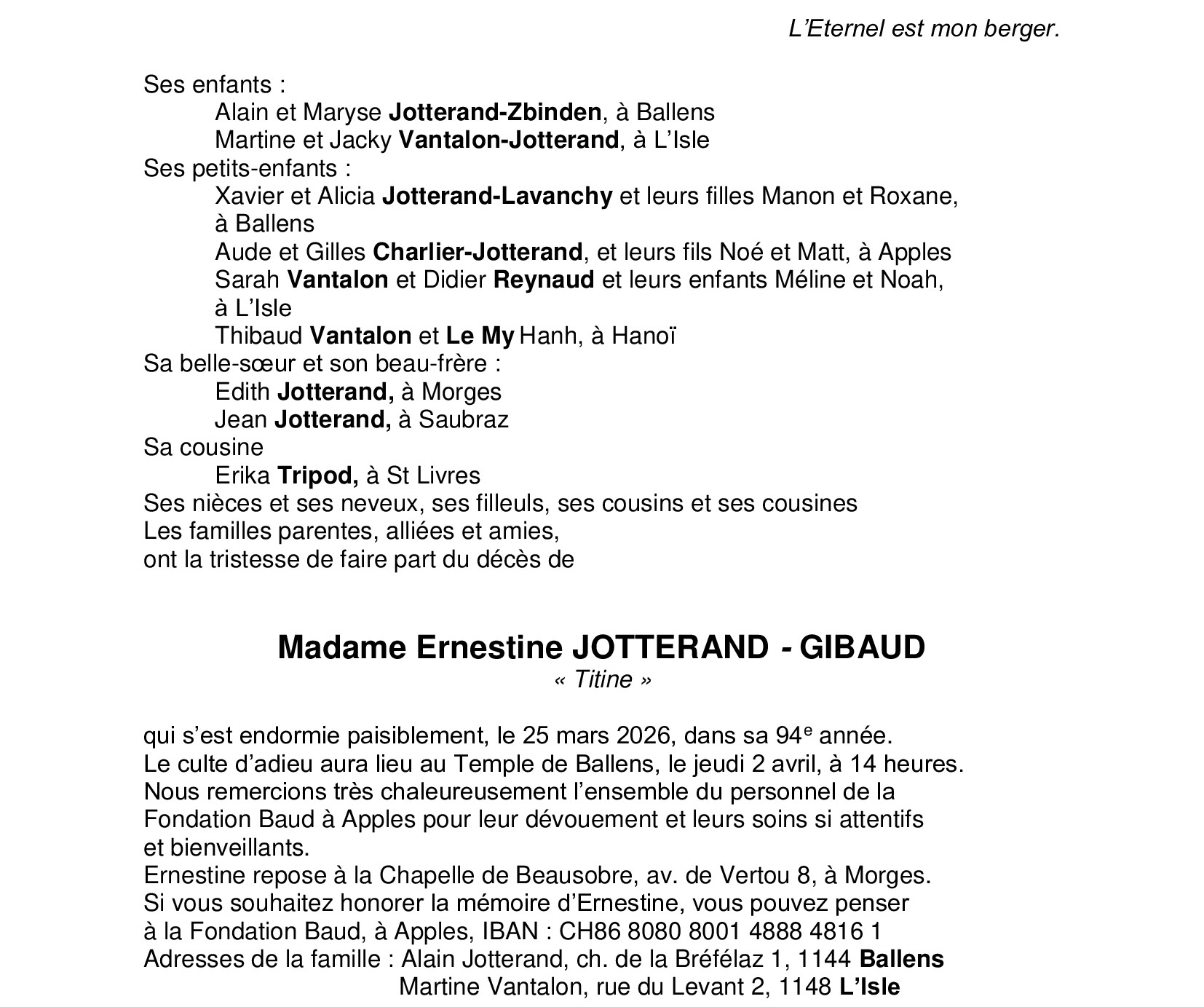 Madame Ernestine JOTTERAND