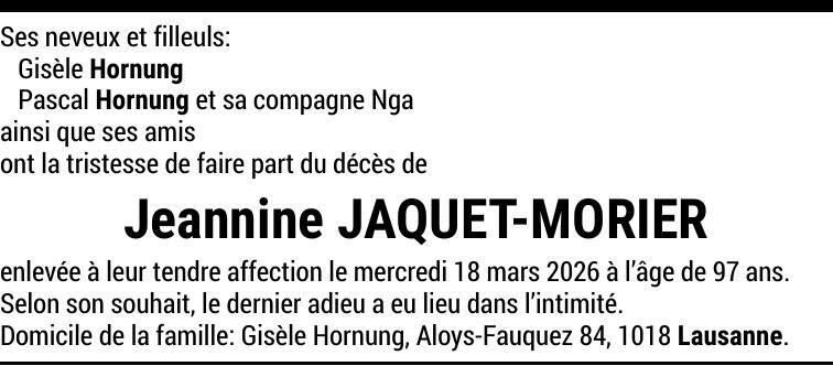 Madame Jeannine JAQUET-MORIER