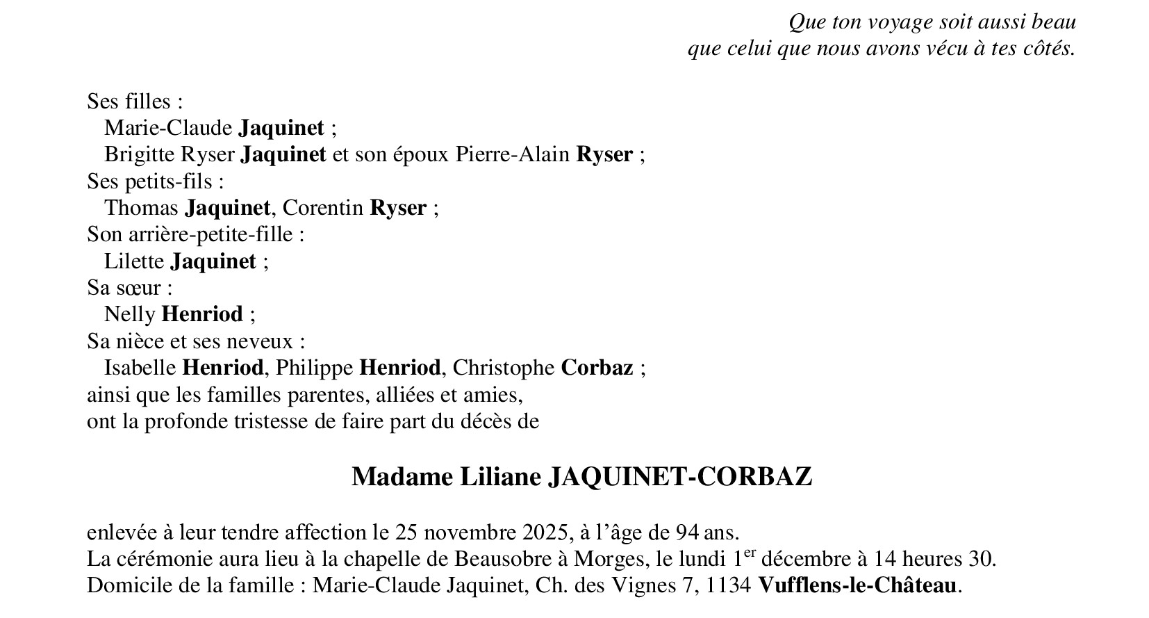 Madame Liliane JAQUINET