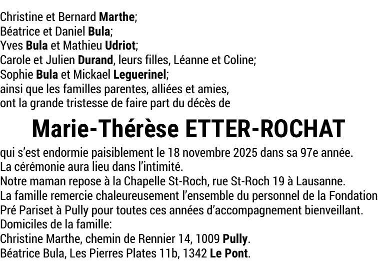 Madame Marie-Thérèse ETTER-ROCHAT