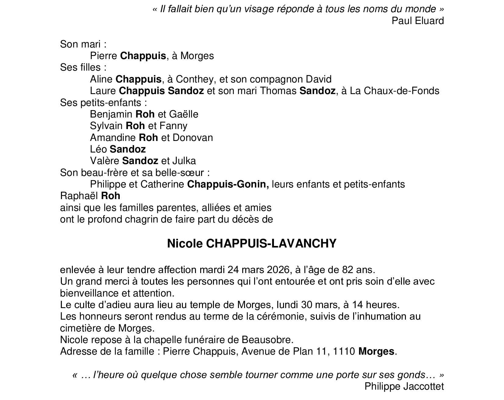 Madame Nicole CHAPPUIS