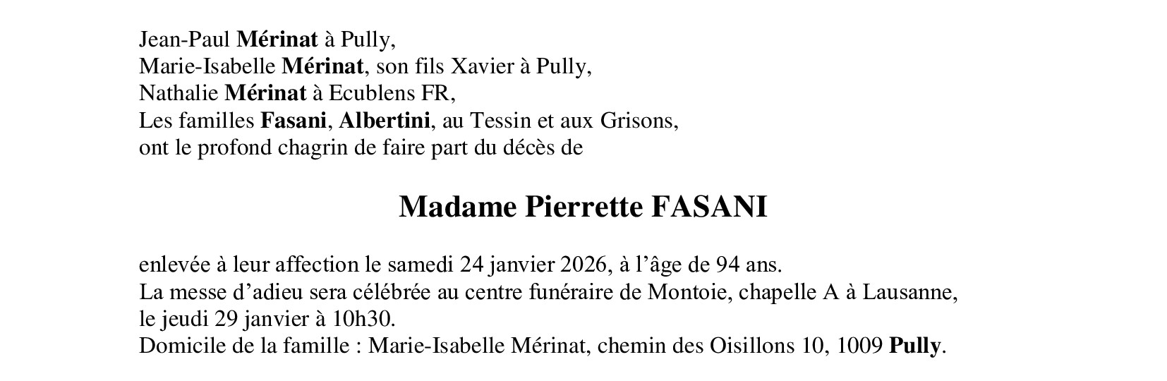 Madame Pierrette FASANI