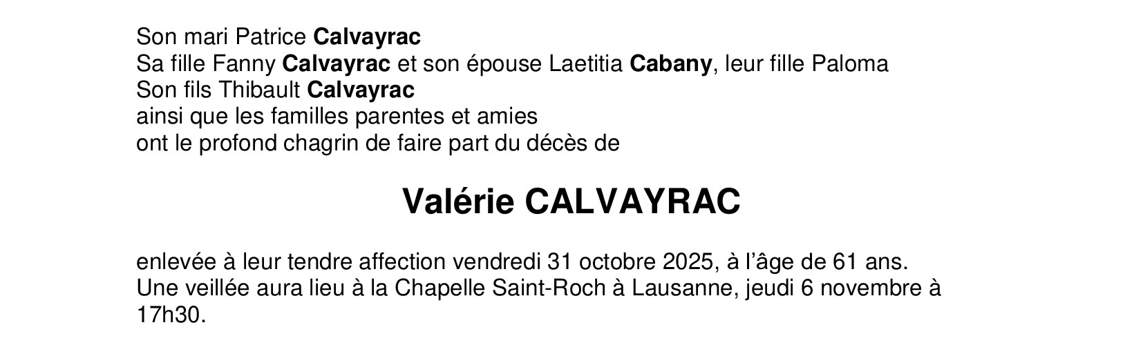 Madame Valérie CALVAYRAC