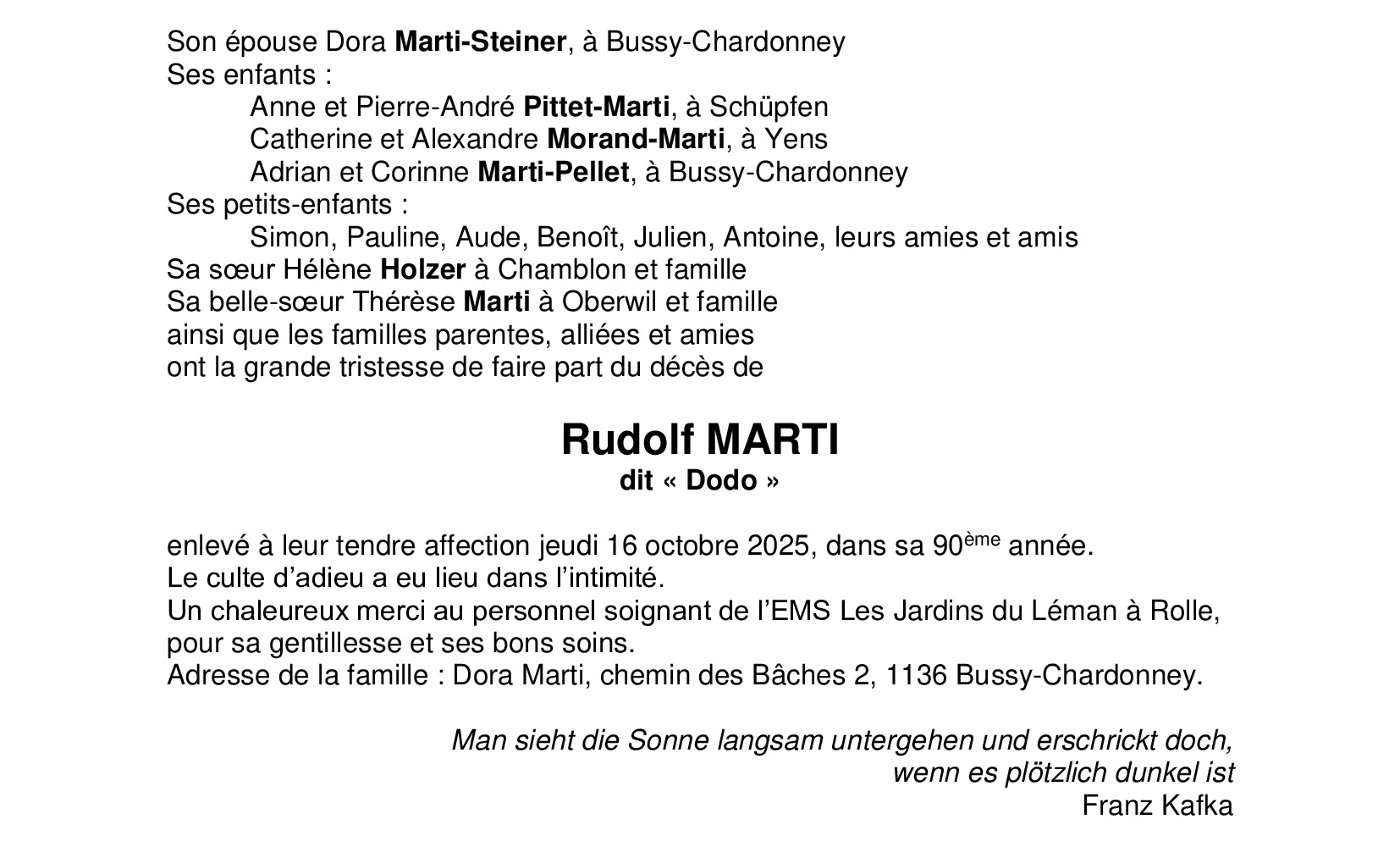 Monsieur Rudolf MARTI dit Dodo